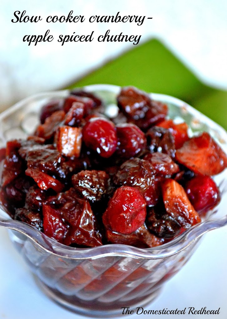 It’s January/February, the months of good intentions. The time of year when everyone and their second cousin decide to swear off sugar and sweets and SPRINKLES and opt into low-carb, low-fat, low-gluten, low- <insert supposedly bad thing here> food to go with their new gym membership and bright, shiny resolution to lose ten pounds before July. Which means that the cookies and bars I’ve baked (and foisted off on Reuben and his office) aren’t as warmly received as they should be, and I’ll be darned if I’m going to have two dozen sprinkle-loaded cookies sitting around the house calling my name. So in lieu of the sprinkle fest that I wanted to post, I’m sharing a new recipe with you instead that is more appropriate for the bitterly cold weather we’re having. It’s bright and colorful, easy enough to make (you can prep it ahead of time, and make it in the slow cooker during the day), and the sugars can be swapped out with Splenda or honey or whatever the heck the newest diet fad allows. It also makes your house smell like sweet, spiced cinnamon apple heaven, which earns it extra brownie points in my book. Try it on its own, as a side dish, or slathered onto warm homemade rolls or bread. Or put it in a jar and bribe give it to your friends. You really can’t go wrong with it!